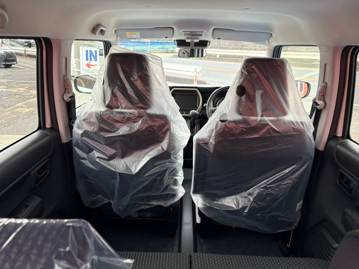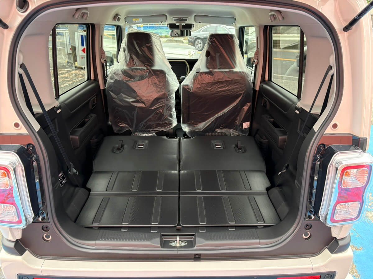 2. 汚れを気にせず「自由」を積み込めるタフな空間は、ハスラーが愛される理由です!その「道具」としての潔さにあります。リヤシートの背面やラゲッジフロアは、汚れや水に強い素材を採用。雨上がりの長靴も、キャンプの道具も、サッと拭くだけ。使い勝手の良さが、あなたの「思い立ったらすぐ出かける」という自由を全力でバックアップしてくれます。
