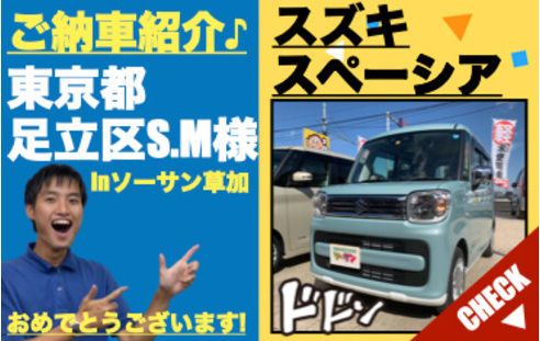 東京都足立区S.M様、この度は軽自動車の未使用車(新古車・新車)専門店ソーサンでご購入誠にありがとうございました!