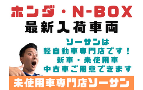 ソーサンは、埼玉県さいたま市・蕨市・戸田市・川口市・草加市・越谷市・八潮市・東京都足立区・北区を中心にご利用されている店舗です。年間販売台数1,000台突破!埼玉県の軽自動車(排気量660cc)中心としたトップ・クラスの販売店です!衝突軽減(アシスト)・低燃費・色や装備や状態などから検索いただき比較ができるお店です!購入後も自動車のことなら全てお任せ!車検や点検・鈑金修理などアフターサポート付きで地域トップクラスの充実店です!お客様の依頼・要望・必要に応じて現金・オートローンの月々支払(ローン分割、定額..等)方法をお選び頂けます!本体価格やナビ・オーディオなどの部分ローンなどご遠慮なく質問やご相談ください!