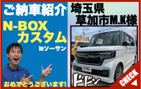 埼玉県草加市M.K様、この度は軽自動車の新古車(未使用車・新車)専門店ソーサンでご購入誠にありがとうございました!