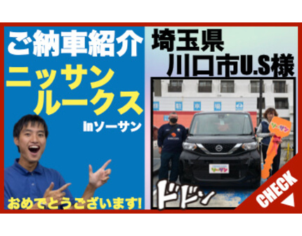 埼玉県川口市U.S様、この度は軽自動車の新古車(未使用車・新車)専門店ソーサンでご購入誠にありがとうございました!