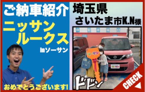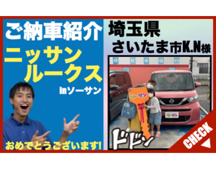 埼玉県さいたま市K.N様、この度は軽自動車の新古車(未使用車・新車)専門店ソーサンでご購入誠にありがとうございました!